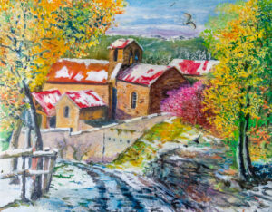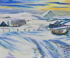 Huile sur toile -Village de Valz sous la neige – 92 x 73
